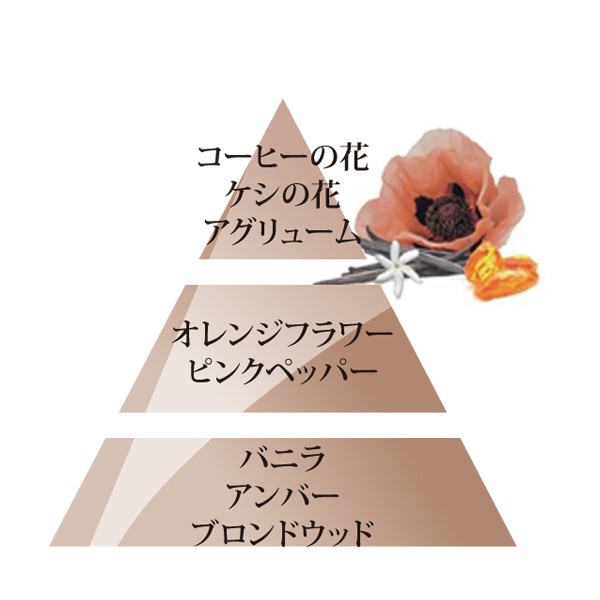 トップノート:コーヒーブロッサム、アヘンフラワー、シトラス •